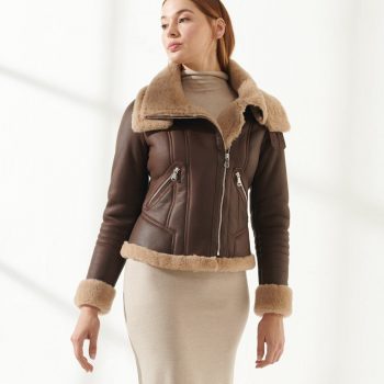 $259.42Original price was: $259.42.$179.00Current price is: $179.00. - Shop Women cropped Faux Fur Shearling Bomber Brown Leather Jacket