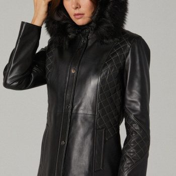 $252.00Original price was: $252.00.$170.00Current price is: $170.00. - Shop Women’s Slim Hooded Real Leather Jacket