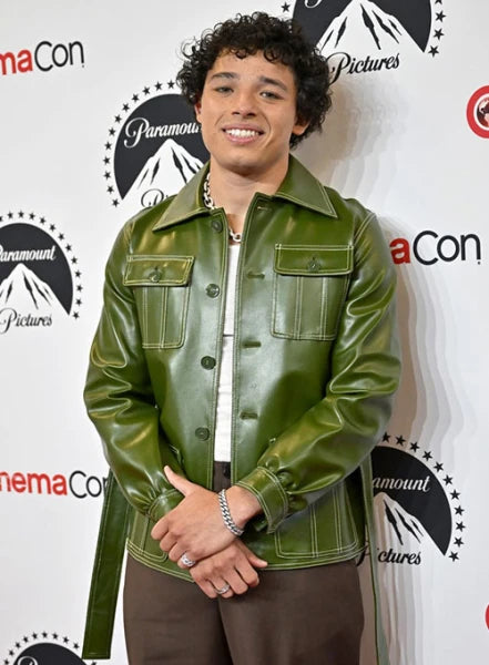 Anthony Ramos in a striking green leather jacket in USA market