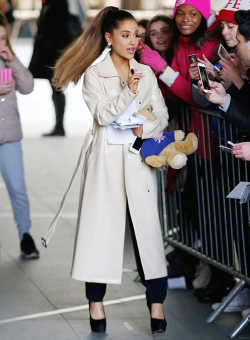 Premium Ariana Grande Long Leather Coat USA