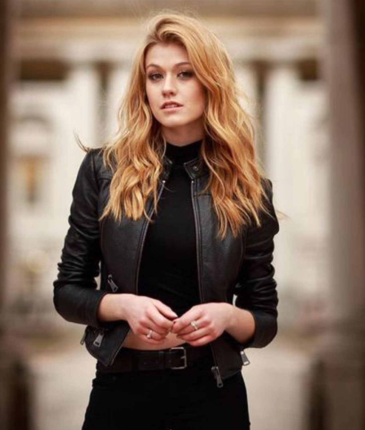 The Arrow Katherine Mcnamara Leather Jacket is made from genuine leather. The jacket is available in a classic black color that gives it a smart and edgy look. The Mia Smoak Leather Jacket has a stand up snap tab collar and a branded YKK zipper closure. The inner of the jacket consists of a soft viscose lining for warmth and comfort. The sleeves of the Arrow Katherine Mcnamara Leather Jacket are long and fitting with open hem cuffs. To keep stuff the jacket has four zipper pockets. The Arrow Katherine Mcnamara Leather Jacket is the replica of the one worn by the character in the show. The jacket is perfect for a night out with friends. The fine quality stitching makes the Arrow Katherine Mcnamara Leather Jacket durable to wear.