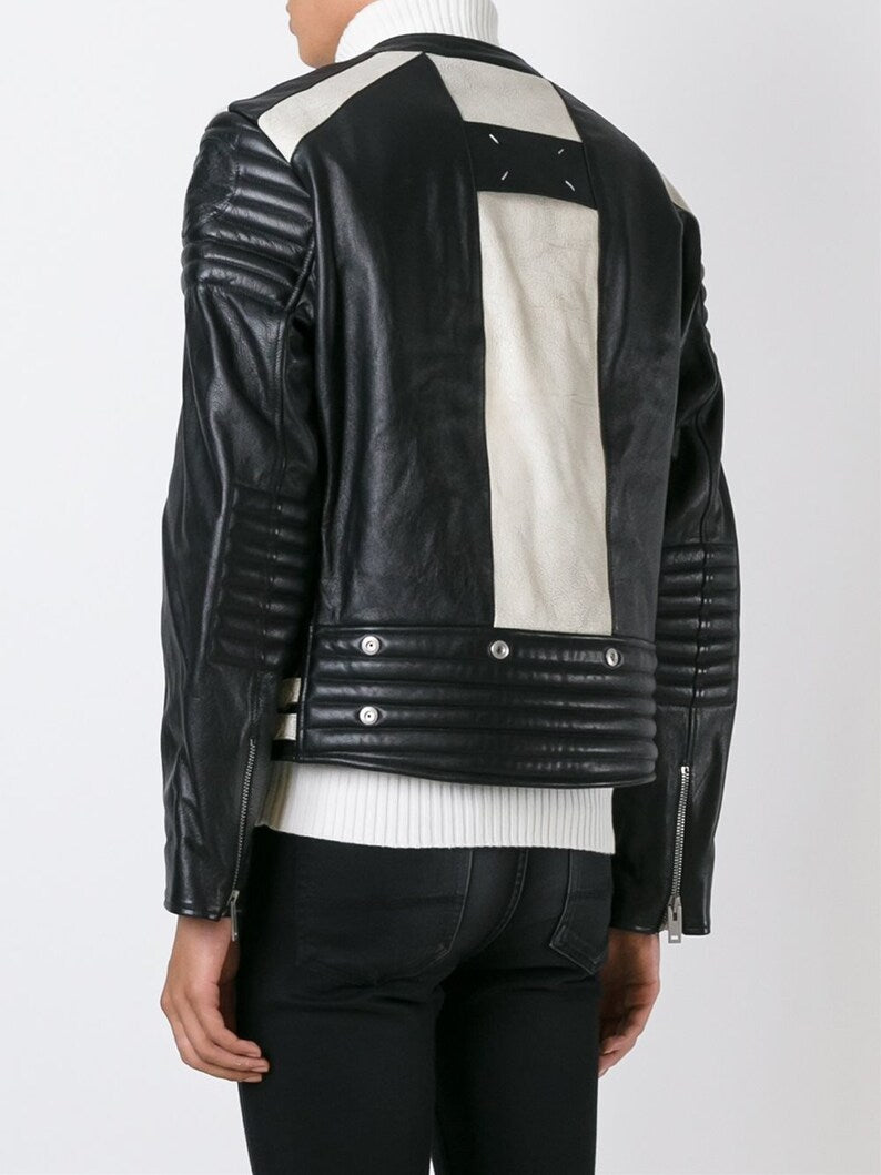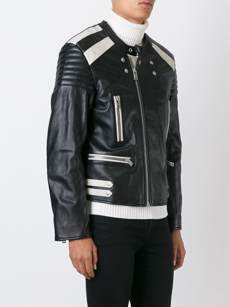 Elevate your outerwear collection with the Bi-colour Biker Leather Jacket, a perfect blend of fashion and functionality!