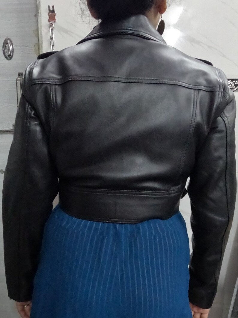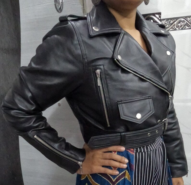 Expertly crafted from genuine leather, this BLACK CROPPED Motorcycle Bolero Shrug Leather Jacket is the perfect blend of style and functionality. With a cropped design and motorcycle-inspired details, this jacket is a must-have for any fashion-forward woman. Stay warm and chic in this tjs leather jacket.