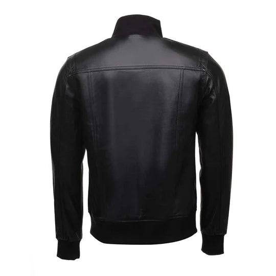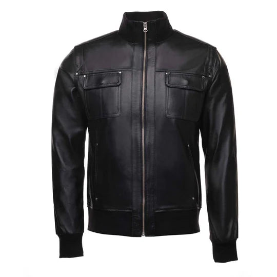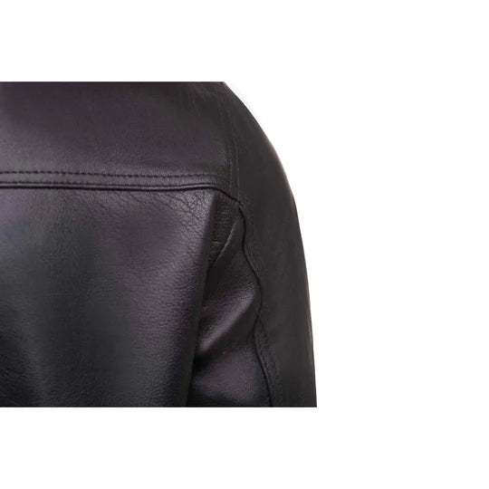 Looking to make a statement this fall? Discover the perfect addition to your wardrobe: the black leather jacket featuring a sleek straight ribbed collar. This stylish piece is designed to effortlessly enhance your fall outfits, making mixing and matching a breeze.