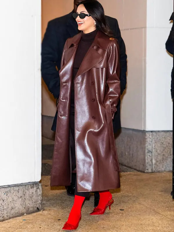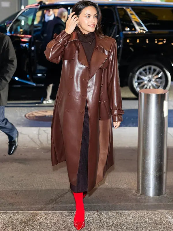 Camila Mendes NYC Maroon Leather Trench Coat Turn heads with this Camilla Mande’s inspired elegant style leather trench coat, in maroo color it is ready to take you sky high far of fashion. Crafted from premium leather, this maroon trench coat is as suave a coverthat all.