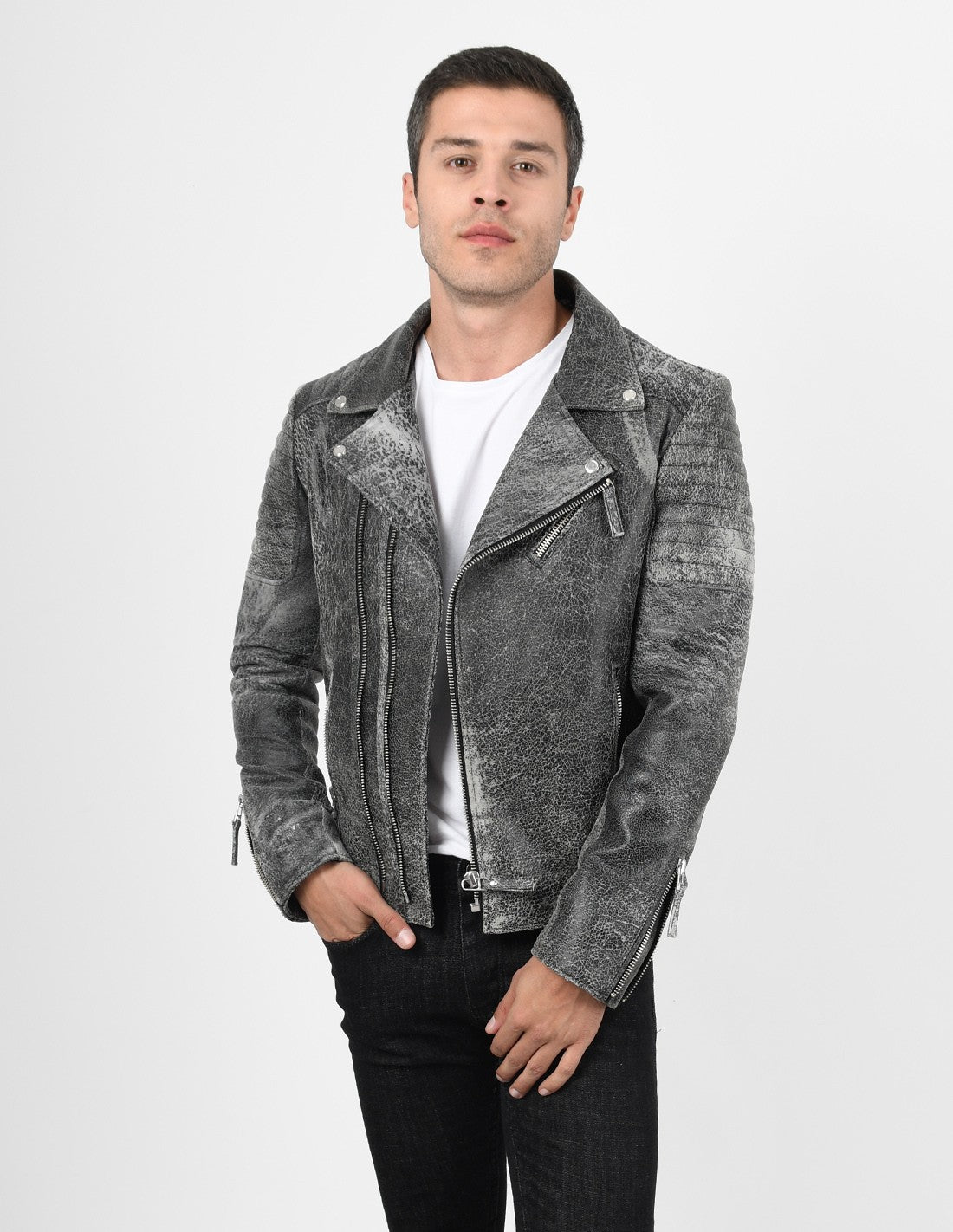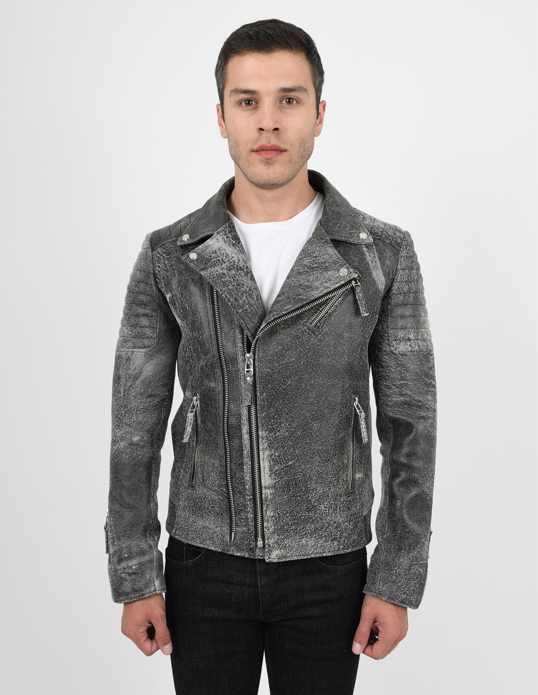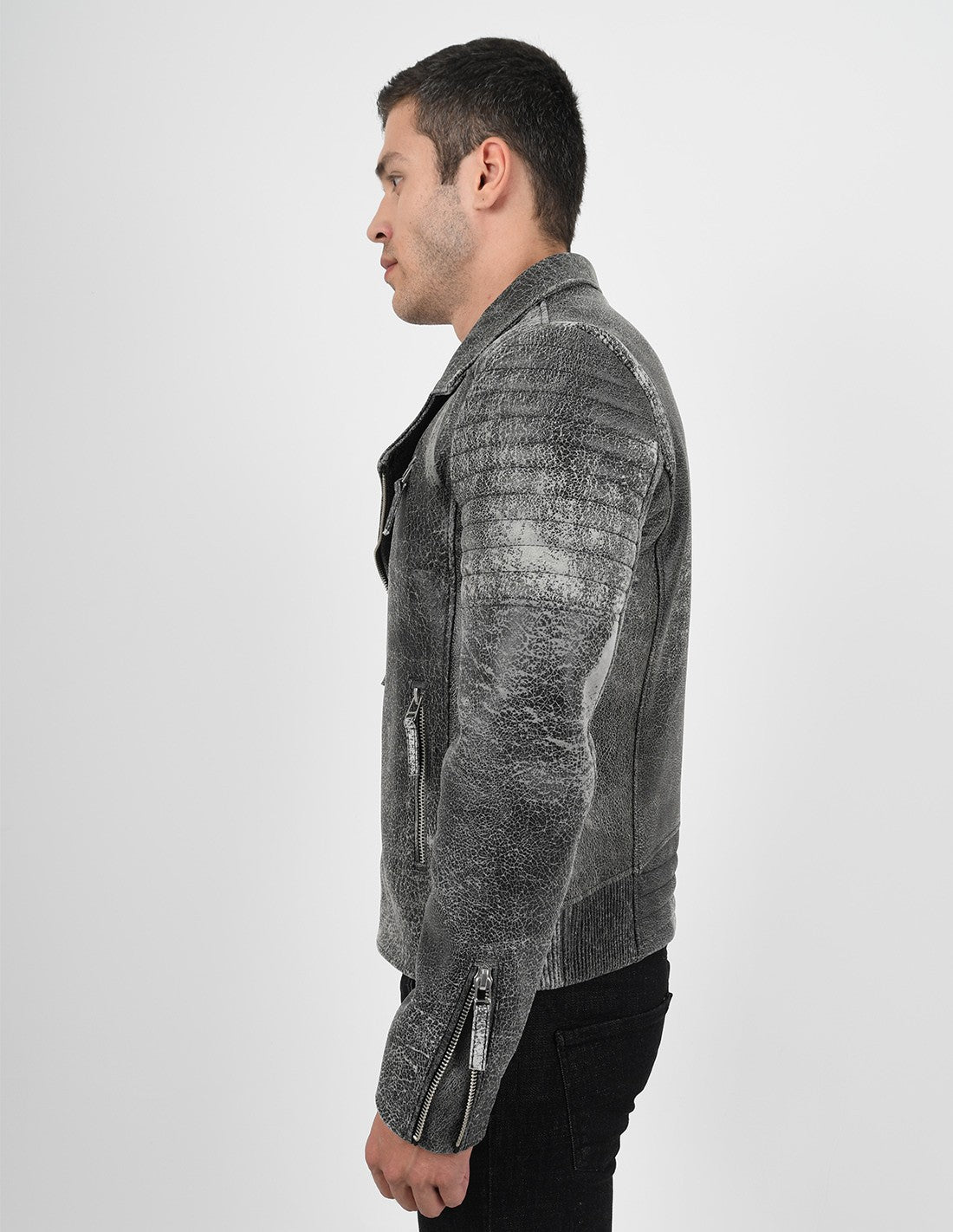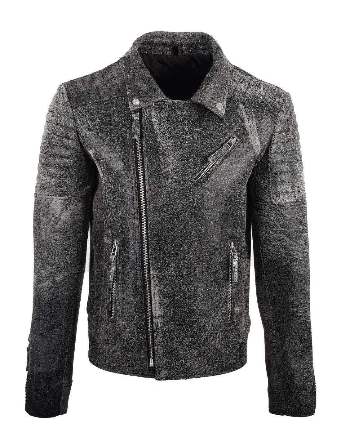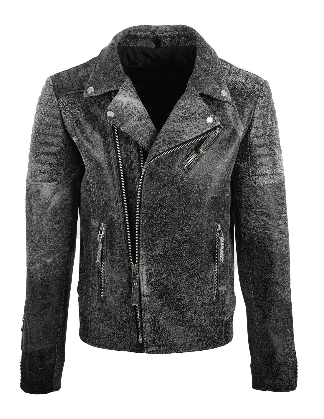 Men’s Biker Crackle Style Leather Jacket