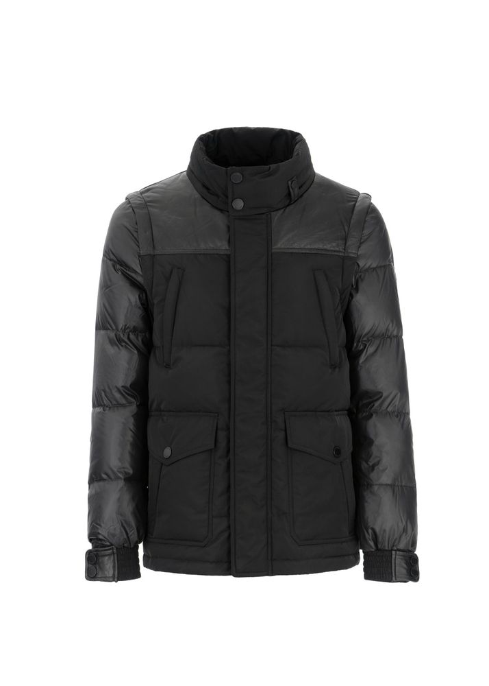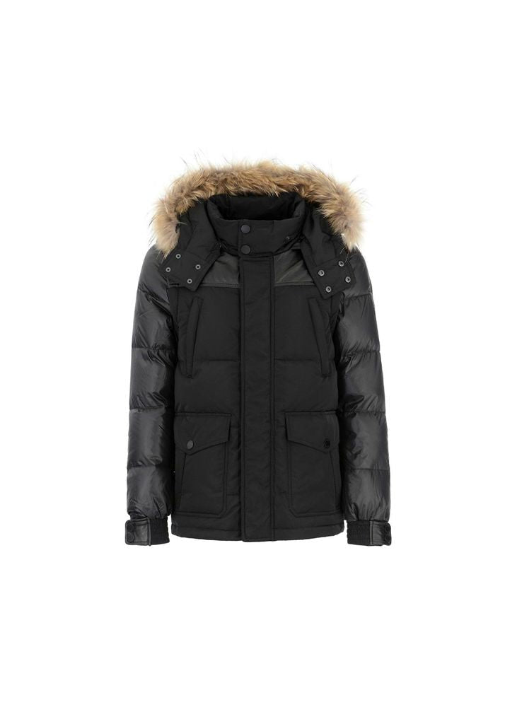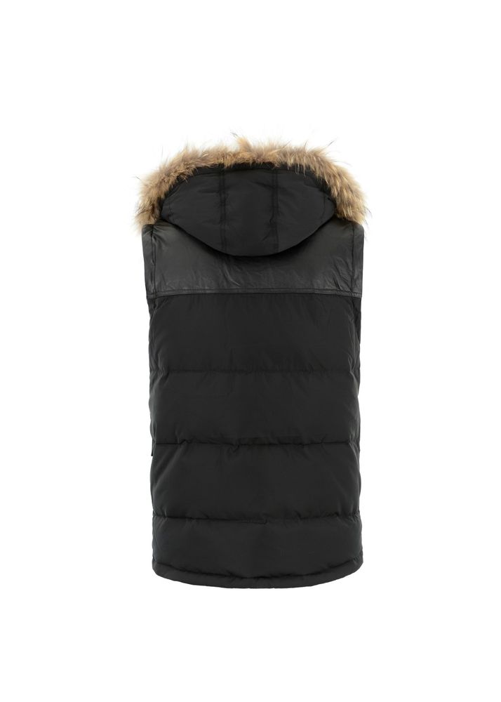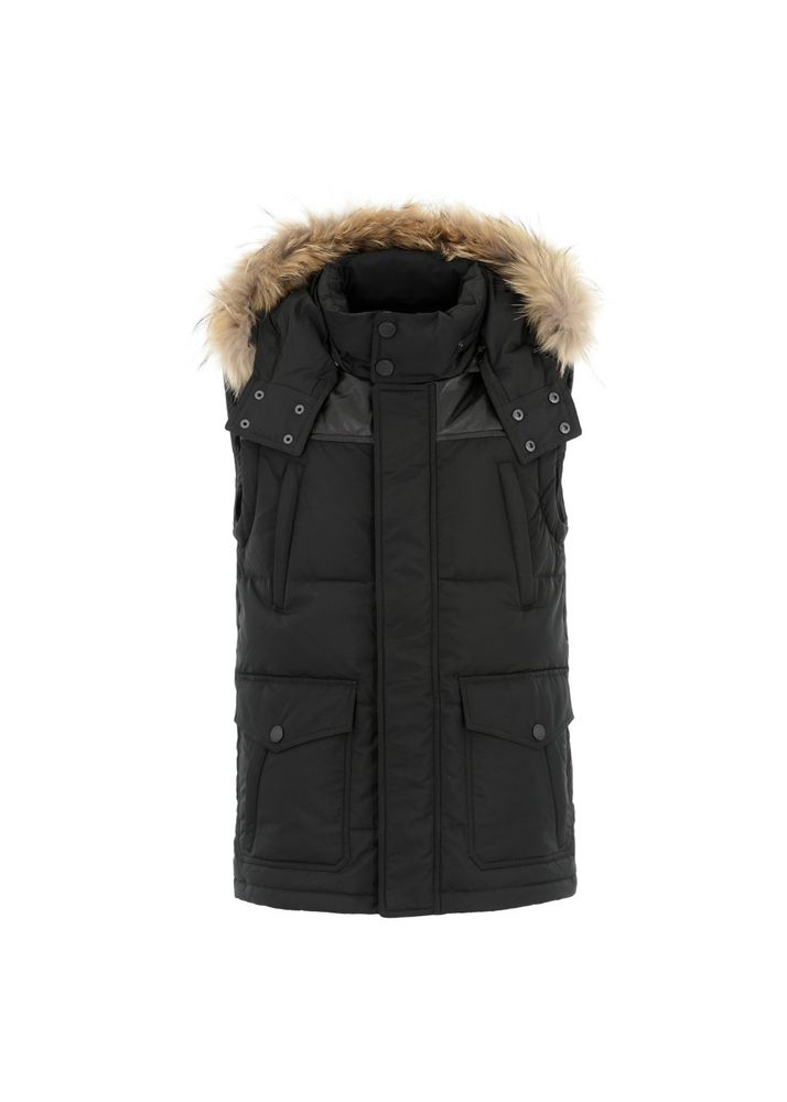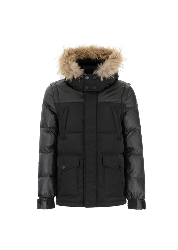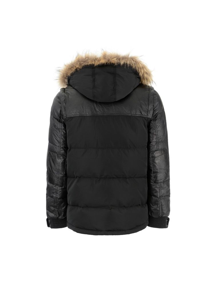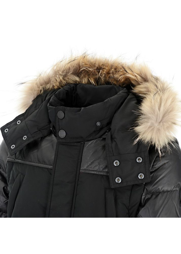 Made from a mixture of polyester fabric and natural sheep leather elements. Permanently insulated with a mix synthetic down, which perfectly protects against the cold. Leather trim is an efficient decoration and enhancement of the shape , thus pertaining to the brand’s leather range. The strong and raw nature of the leather gives the model an “edge” character. the likelihood of making a vest because of detachable sleeves. the entire is fastened with a zipper hidden under the strip with snaps. a crucial aesthetic value of the jacket may be a detachable, soft, natural-colored raccoon fur trim. The hood (also removable) provides excellent protection against frost and guarantees a really elegant, luxurious look. because of the top of the cuffs with an elastic welt, the model has gained functionality and luxury of use.Â