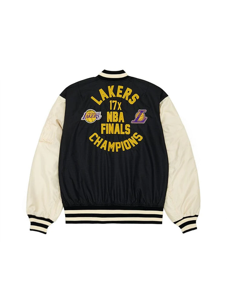 Discover the ultimate in style and comfort with the NBA Los Angeles Bomber Jacket. Made from high-quality materials, this jacket features the iconic Lakers logo and offers unmatched durability. Stay warm and show your team pride with this must-have addition to your wardrobe.