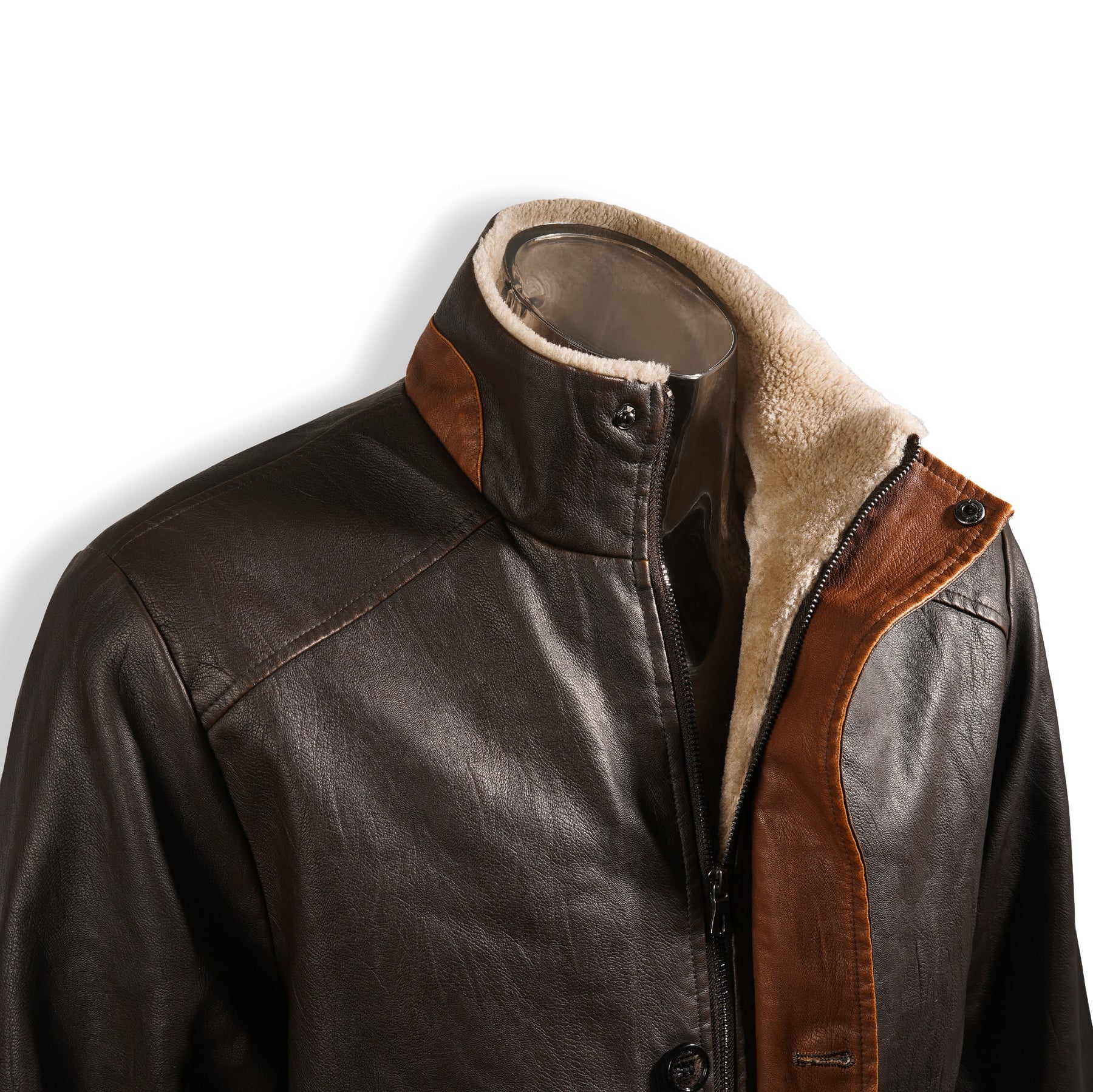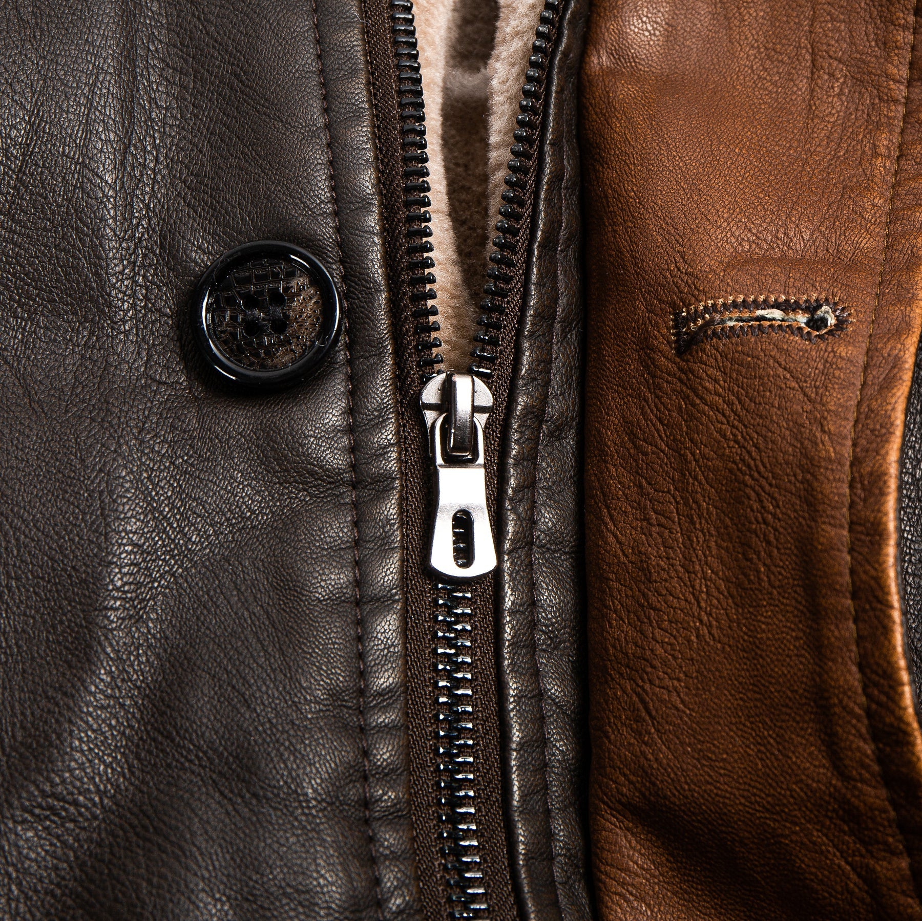 Expertly crafted with a vintage aesthetic, this men’s leather coat boasts a double stand collar for added style. The genuine leather material offers durability and a sophisticated look, making it a timeless addition to any wardrobe. Elevate your outerwear game with this high-quality, versatile piece.