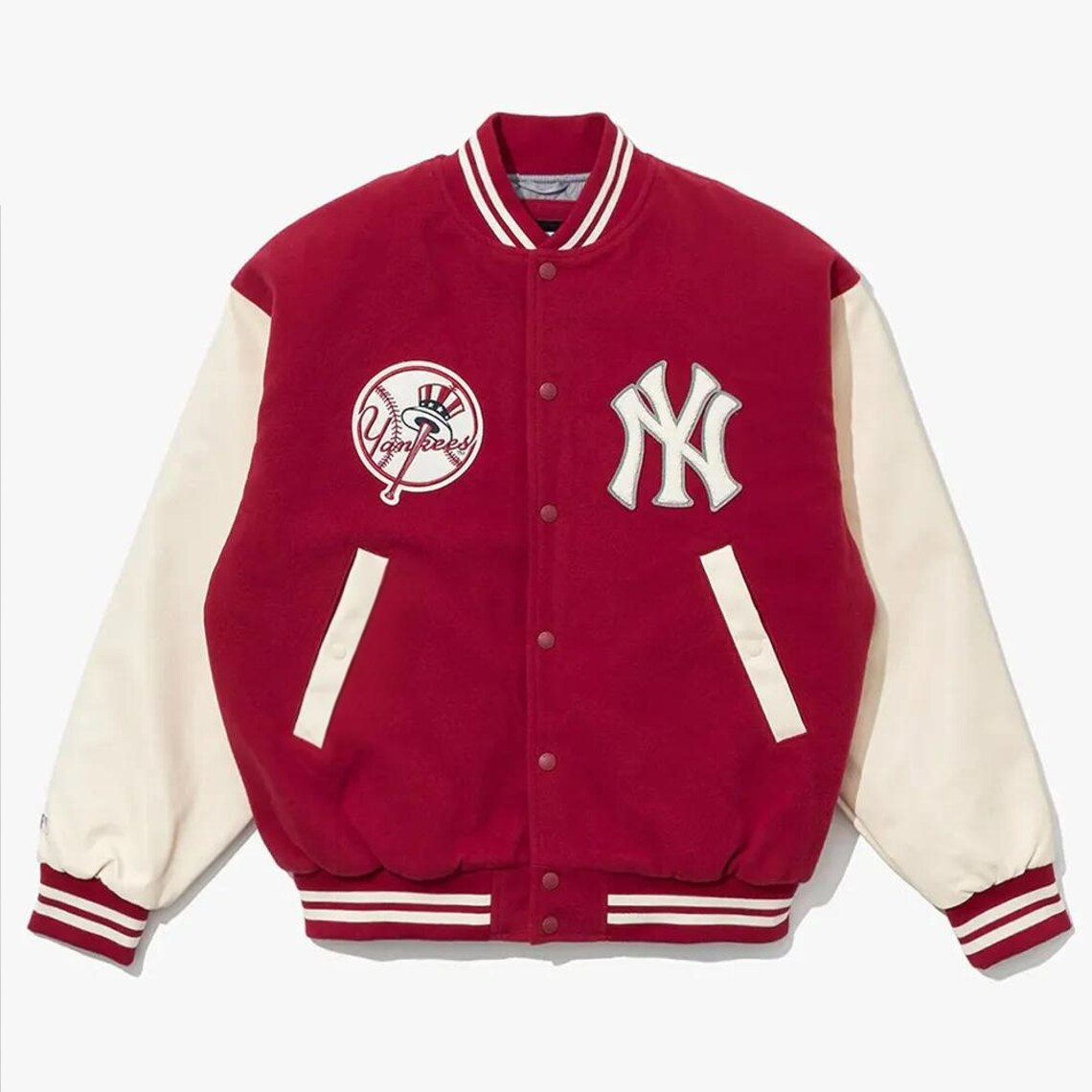 NY Yankees Dark Red Wool Full-Snap Varsity Jacket