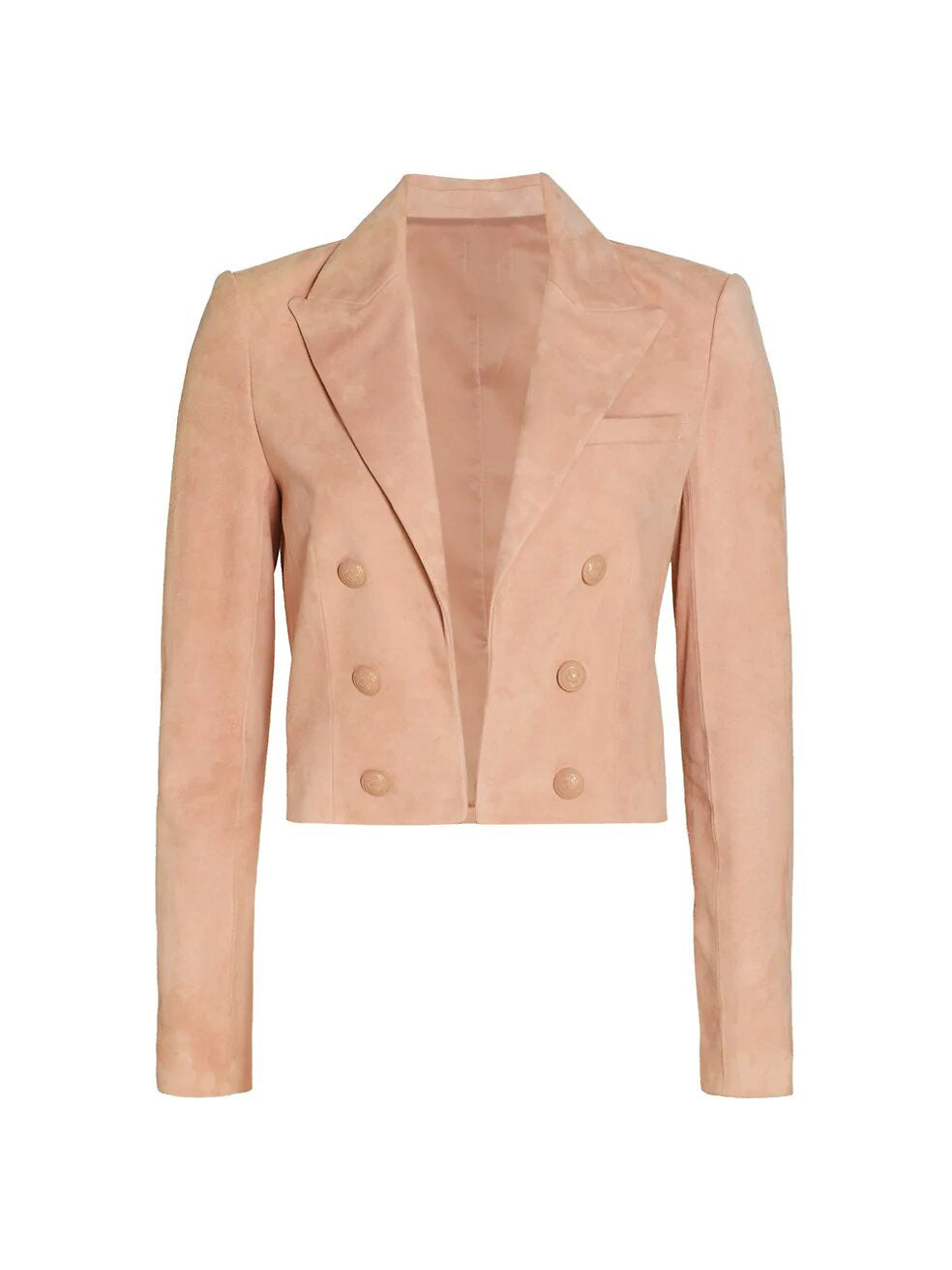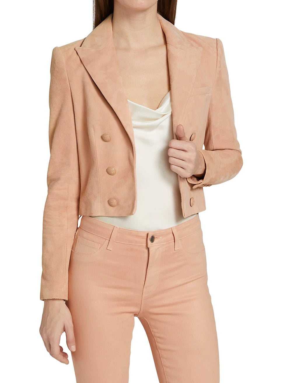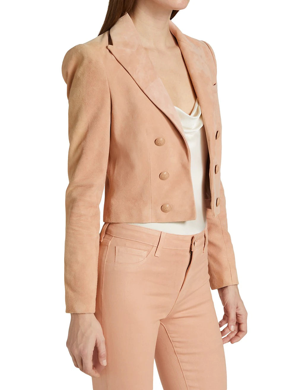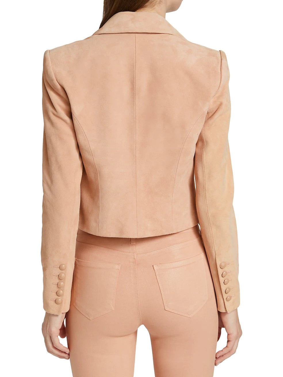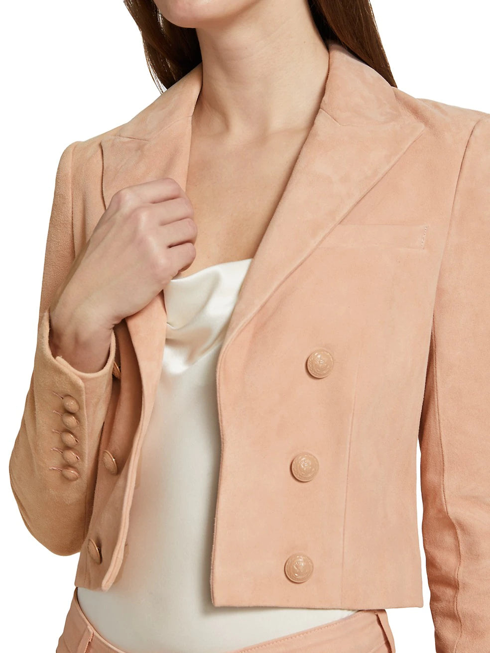 Real Suede Cropped Blazer For Women New Stylish Look Leather Jacket USA