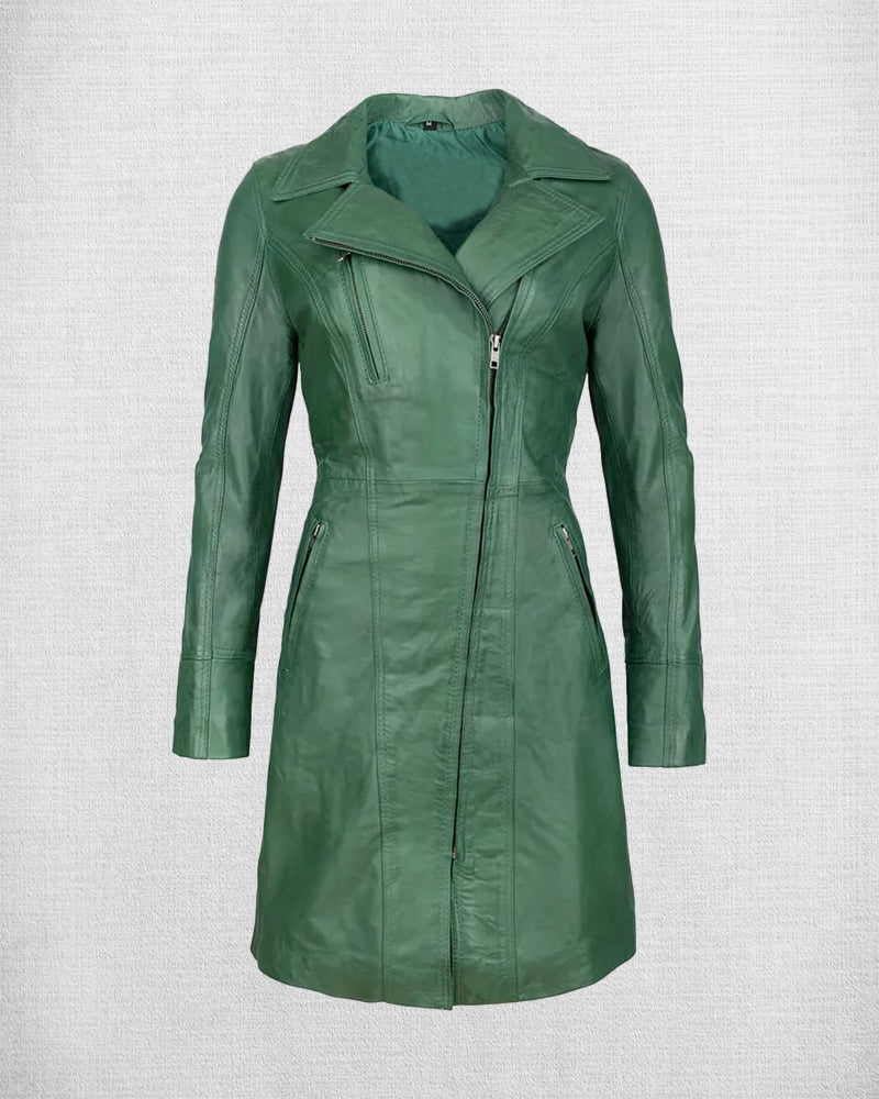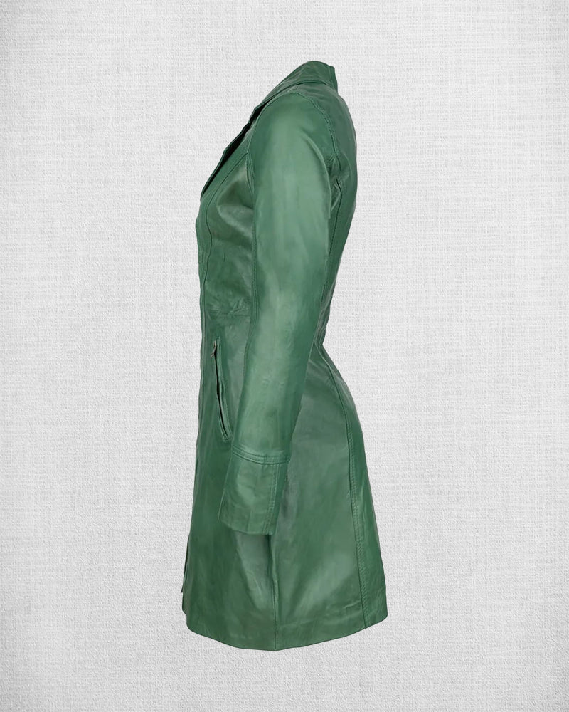 This Stylish Green Leather Jacket is crafted from the finest leather and is perfect for women who want to add a classic touch to their look. It features a striking green color, is warm and comfortable, and is designed to be an eye-catching statement piece.