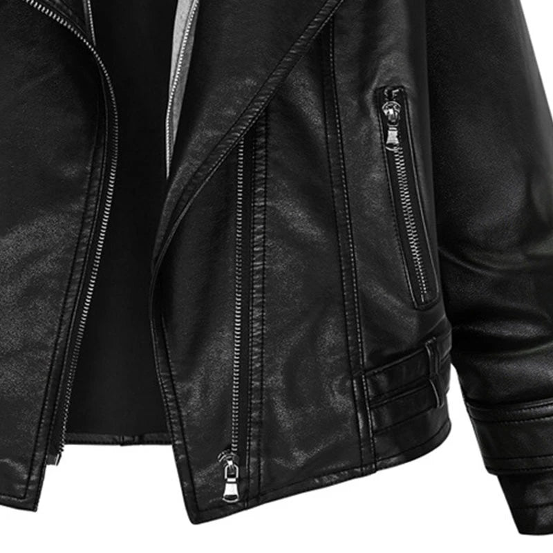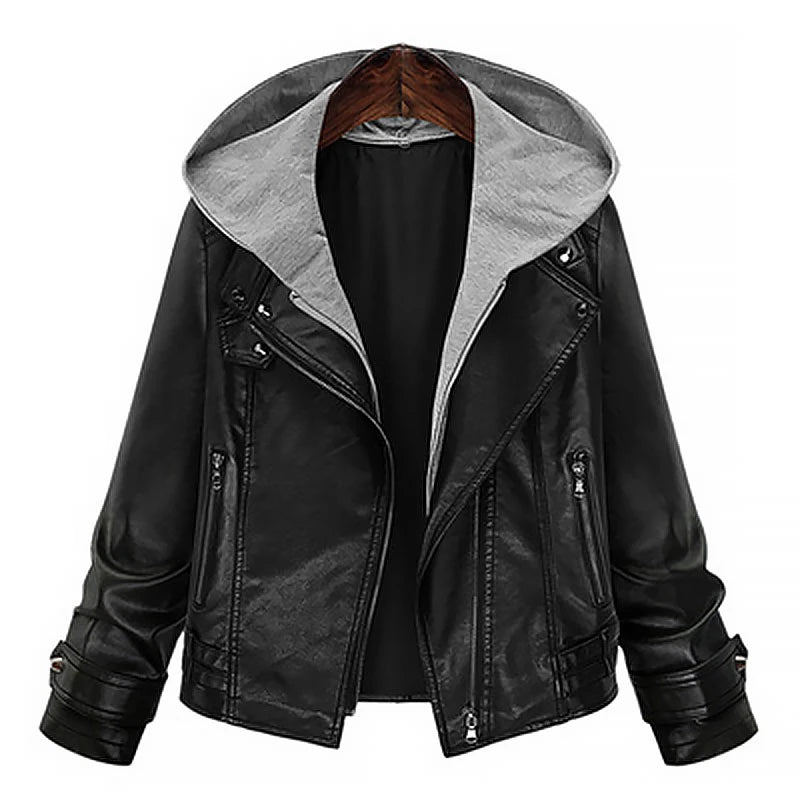 Hooded Leather Jacket is a fashion staple that effortlessly combines style, comfort, and versatility. Crafted from high-quality leather, this jacket showcases a sleek and edgy design, perfect for those seeking a bold and rebellious look. Its hood adds a touch of urban coolness while providing extra protection against the elements. With its timeless appeal, the Hooded Leather Jacket seamlessly transitions from day to night, making it a must-have wardrobe essential for both men and women. Whether paired with jeans for a casual outing or dressed up with a skirt for a night on the town, this jacket exudes confidence and adds a touch of attitude to any ensemble. Embrace your inner rebel and make a bold statement with the Hooded Leather Jacket.