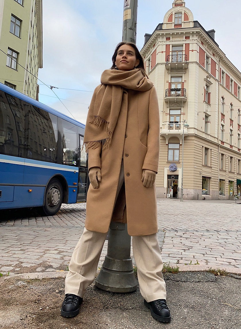 The jacket comes with lapel collar with buckle straps, zipper closure, and two waist pockets. In addition, it also features full-length shearling cuffs, fur shearling inside, and adjustable belts at the waist.