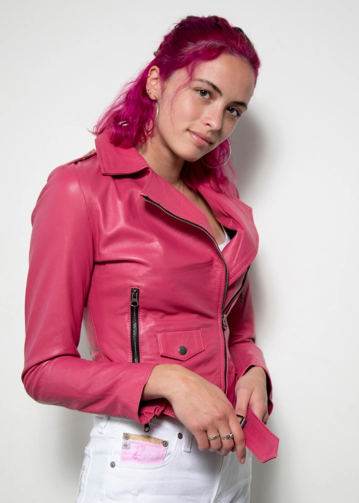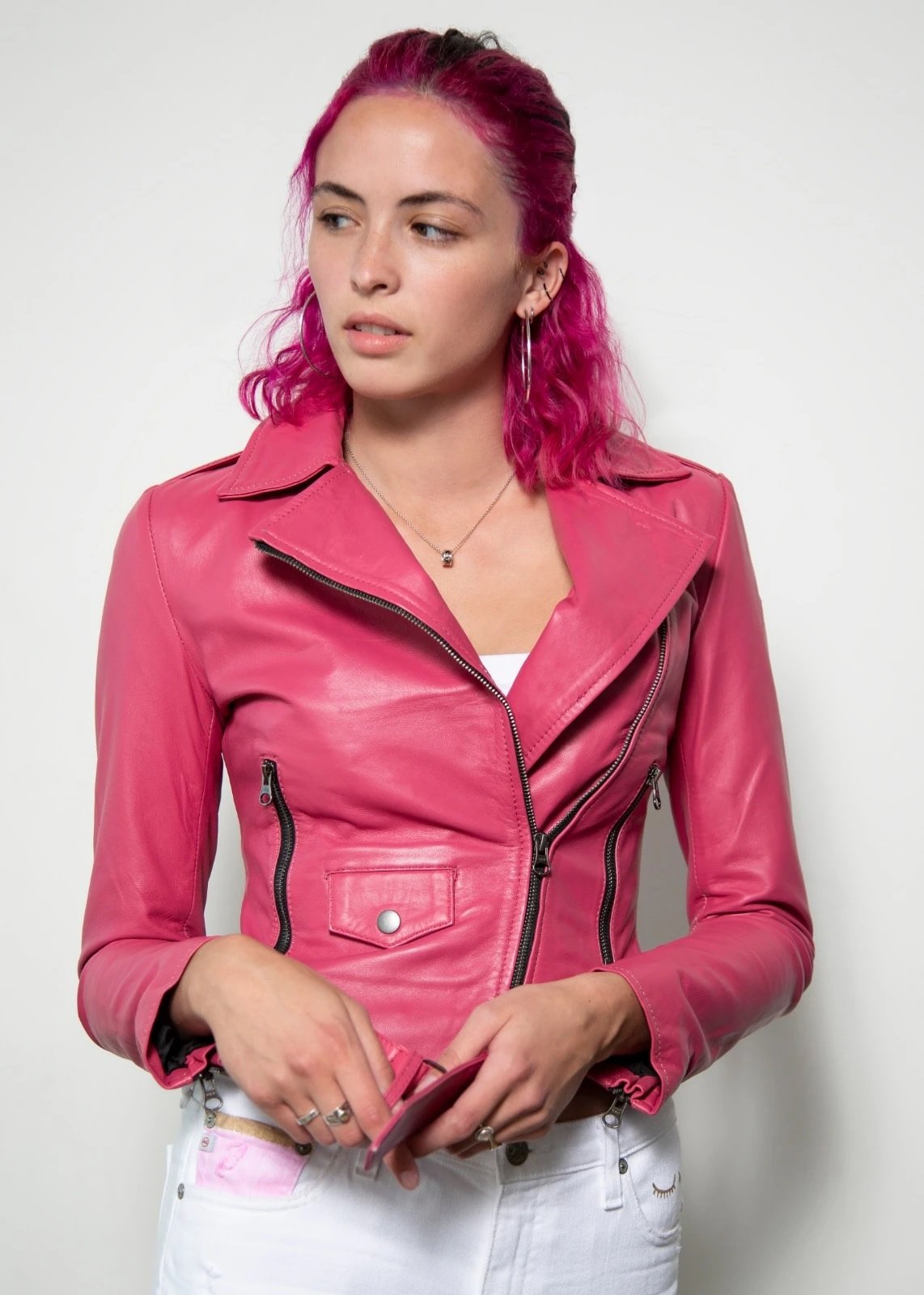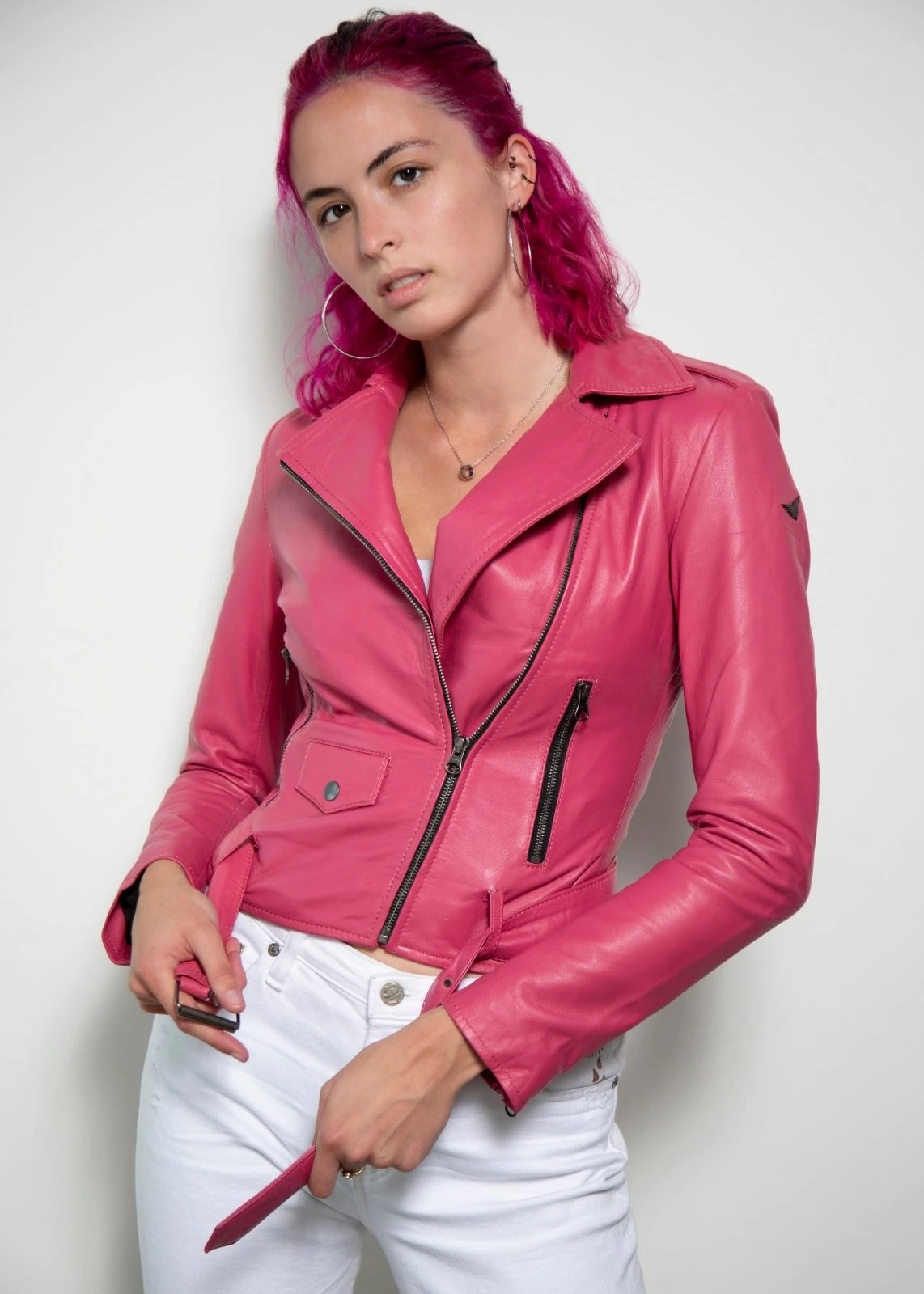 PREMIUM WOMENS STYLISH PINK BIKER LEATHER JACKETÂ
