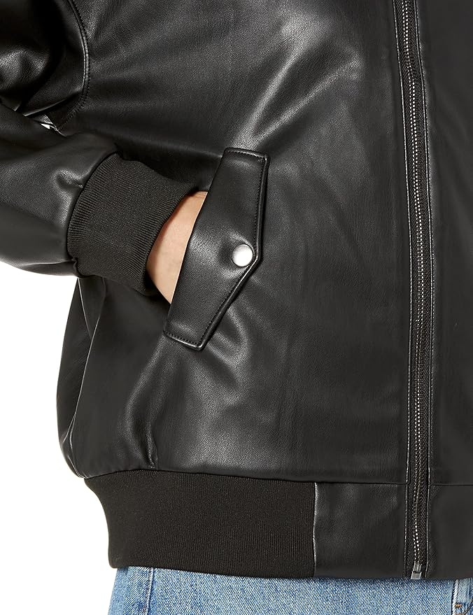 Stay stylish and comfortable with the Staples by The Jackets Seller Vegan Leather Jacket, designed with a loose fit for effortless wear. Crafted from high-quality vegan leather, this jacket offers a sustainable alternative without compromising on style. The rib trim at the cuffs and hem provides a secure yet relaxed fit, adding a modern touch to this timeless piece.