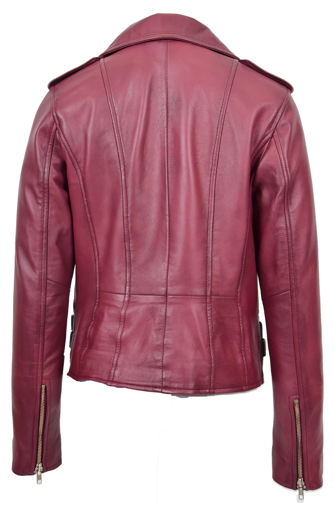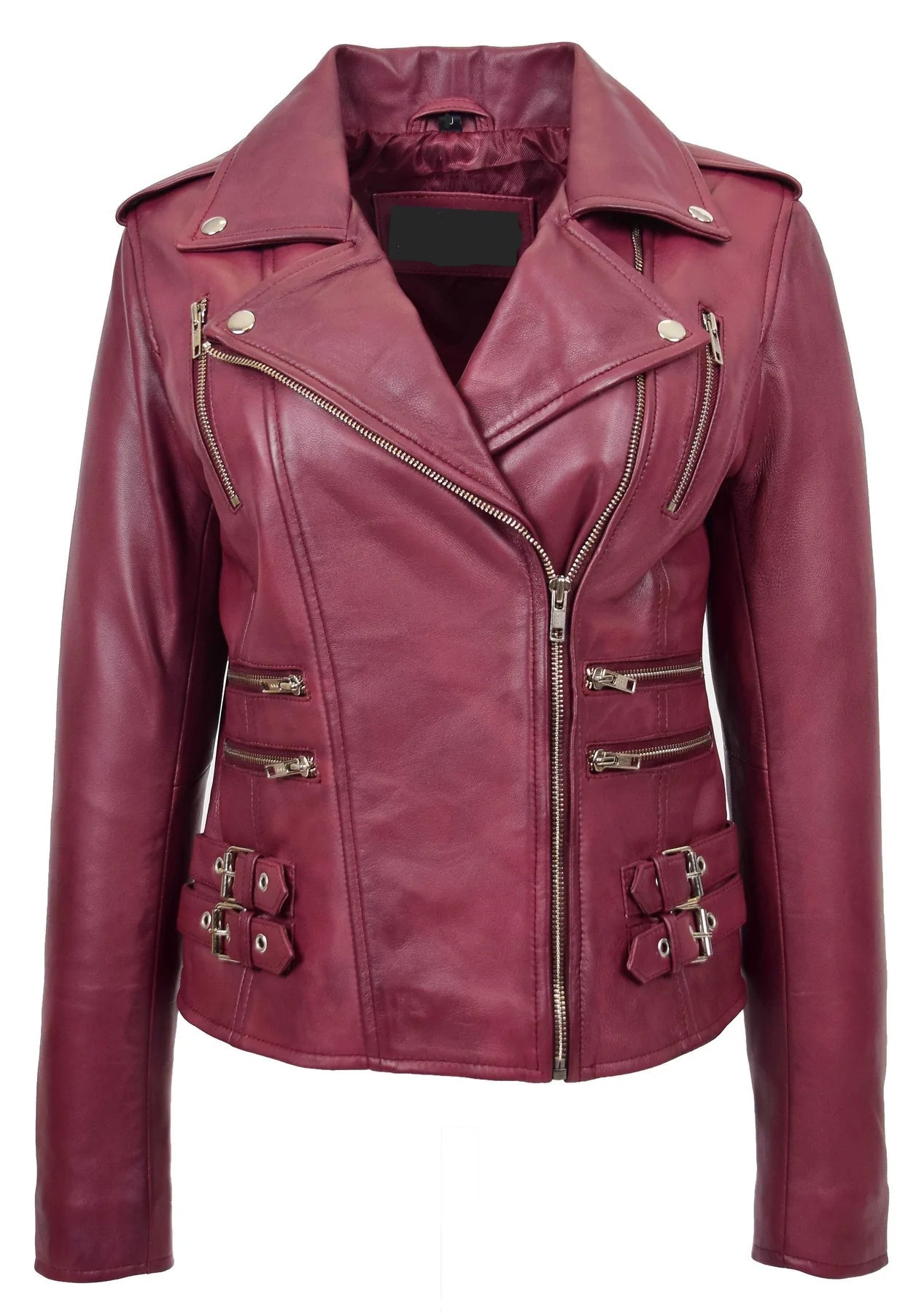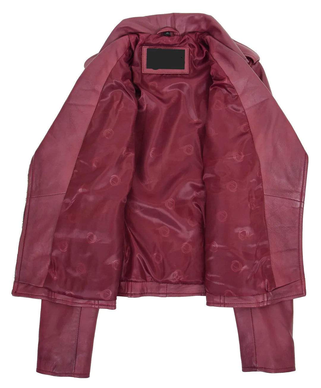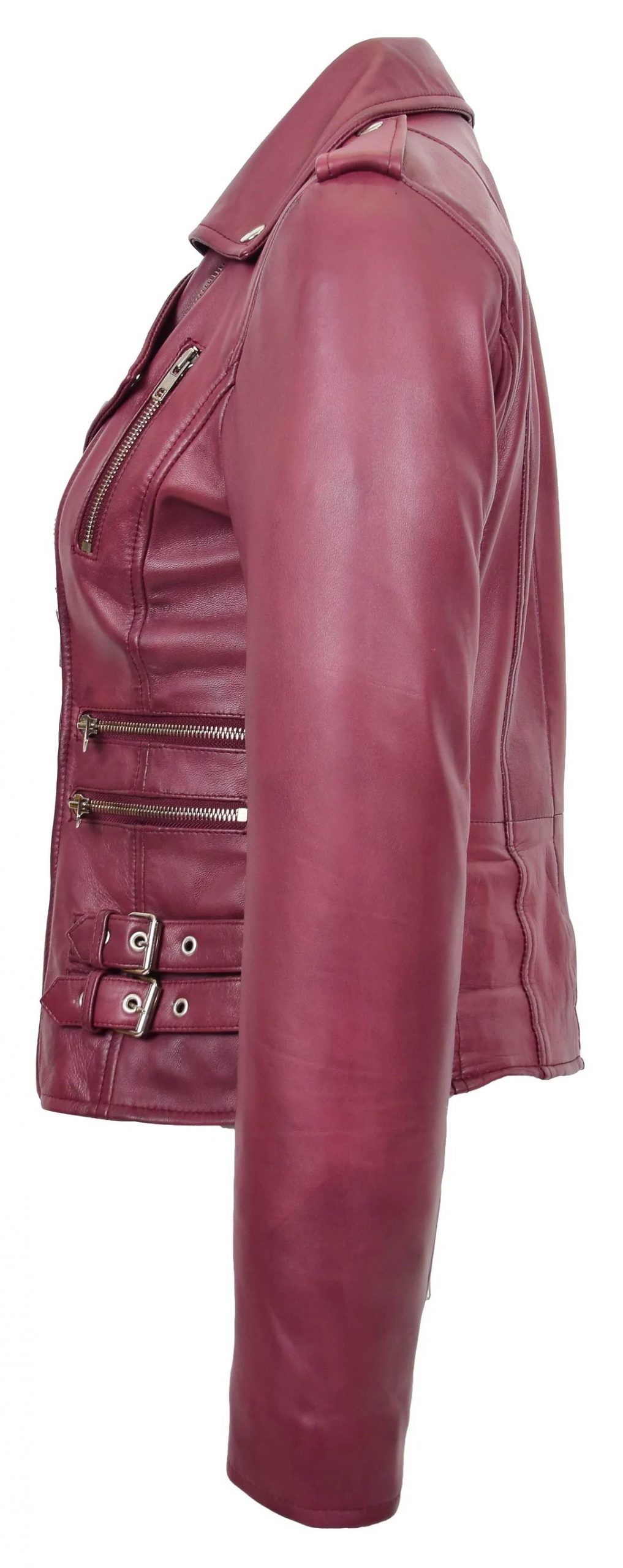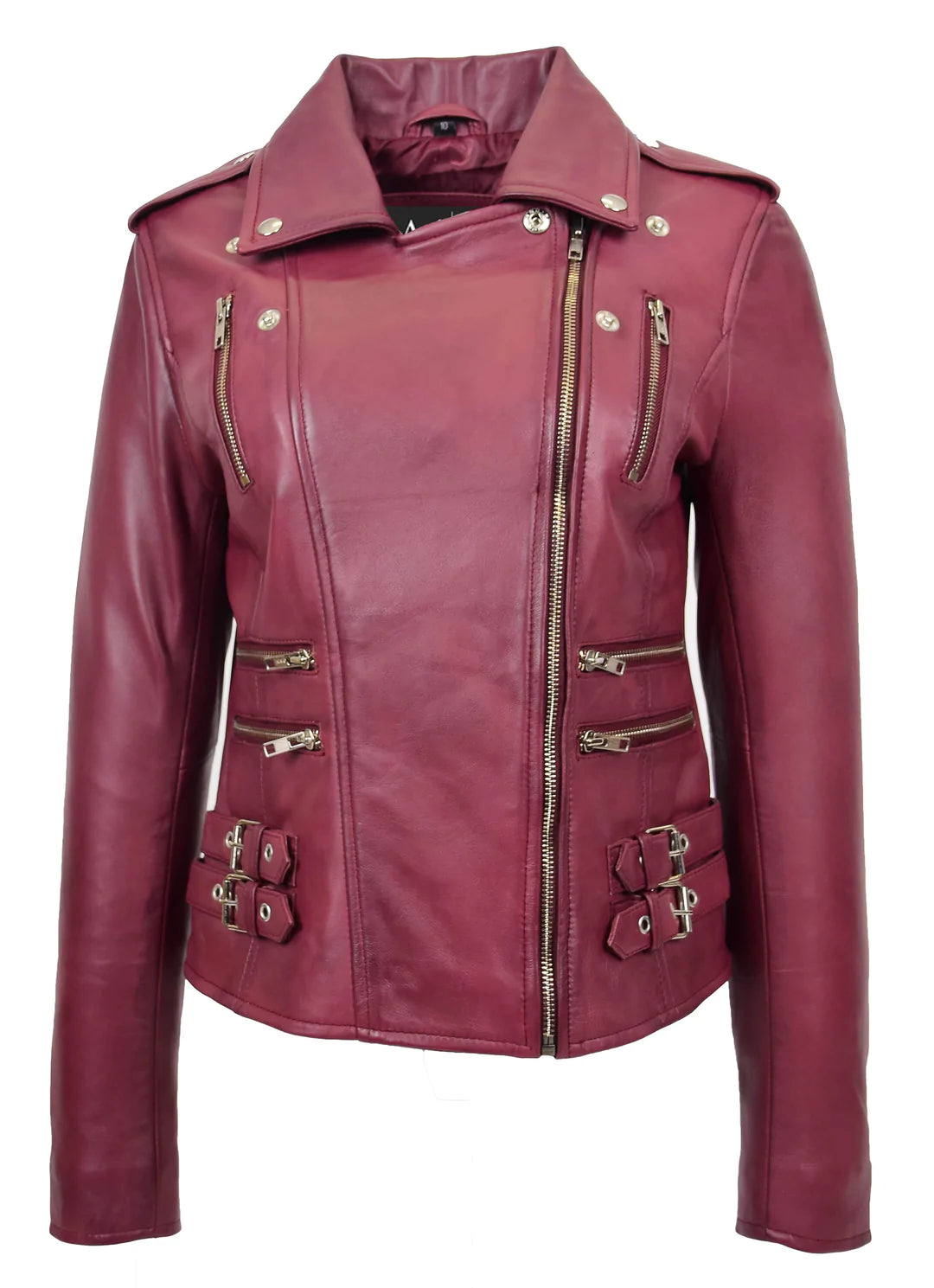 PREMIUM WOMEN’S TRENDY BIKER LEATHER JACKET BEYONCE BURGUNDY